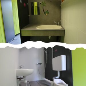 – a “nursery” block including: a baby bath, a shower, a sink, and a toilet.